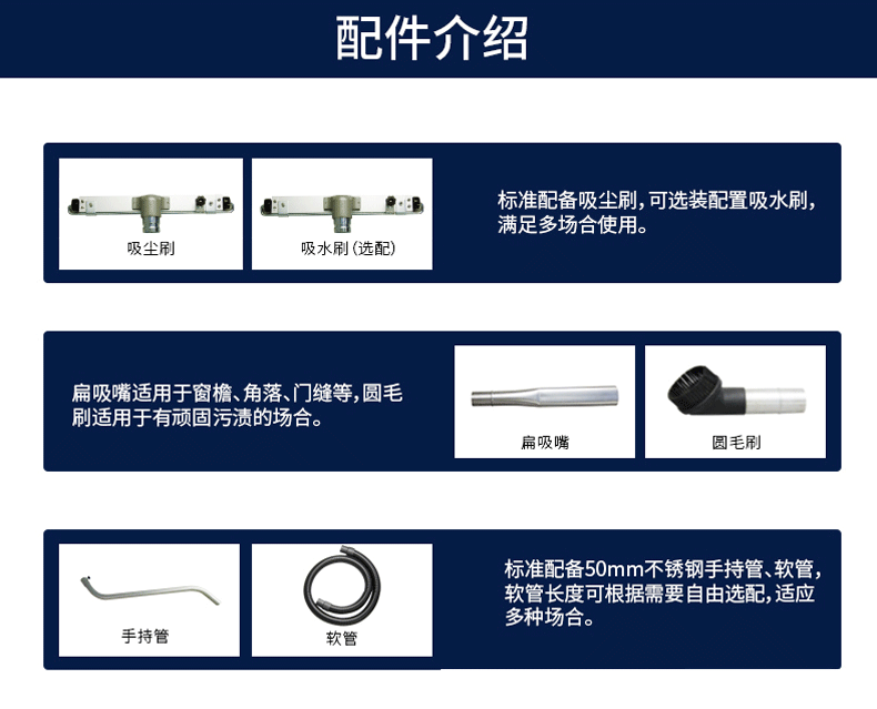 5. 吸口 : 76MM轉(zhuǎn)50鋁鑄吸口配合不銹鋼變徑,軟管不會(huì)打結(jié)。